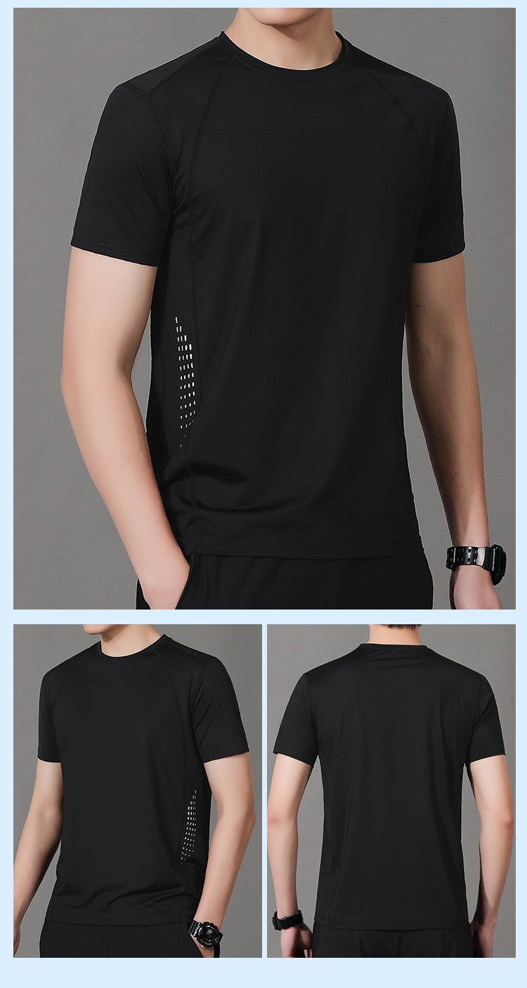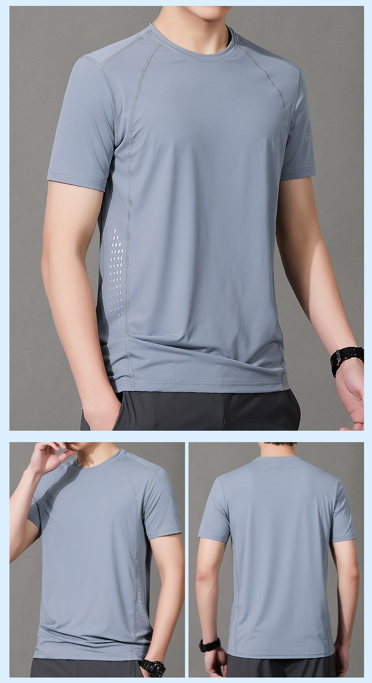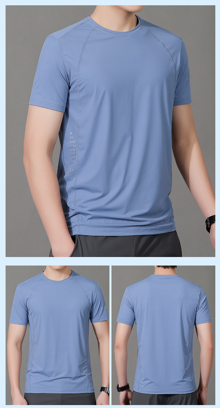 メンズアウトドアレジャーデブプラスサイズ半袖アイスシルクスポーツ速乾服ストレッチデブプラス大きい半袖Tシャツ